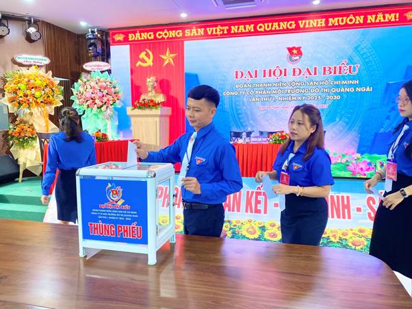 Đại hội Đại biểu Đoàn TNCS Hồ Chí Minh Công ty CP Môi trường Đô thị Quảng Ngãi lần thứ 1, nhiệm kỳ 2025 -2030 đã thông qua Nghị quyết Đại hội và tiến hành bầu cử Ban Chấp hành khóa mới. Với tinh thần dân chủ và trách nhiệm cao, Đại hội đã tín nhiệm bầu ra Ban Chấp hành Đoàn Thanh niên Công ty CP Môi trường Đô thị Quảng Ngãi lần thứ 1, nhiệm kỳ 2025 -2030 gồm 11 đồng chí. Đồng chí Nguyễn Thị Bích Dung giữ chức vụ Bí thư Đoàn; đồng chí Võ Đình Hà giữ chức Phó Bí thư Đoàn. Đây là những gương mặt tiêu biểu, đại diện của thế hệ tiên phong, bản lĩnh và khát vọng cống hiến của tuổi trẻ.