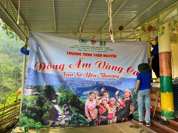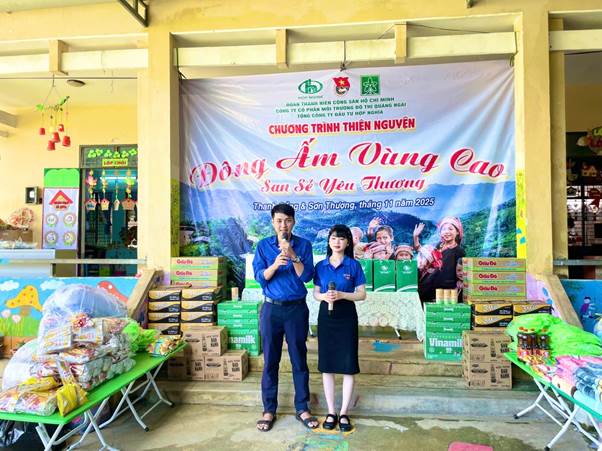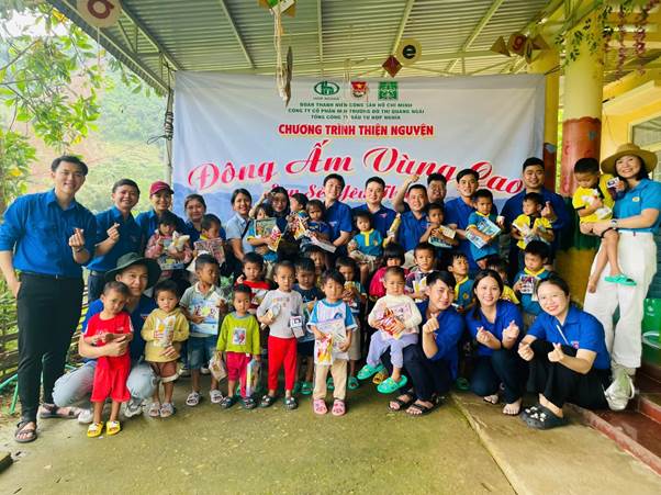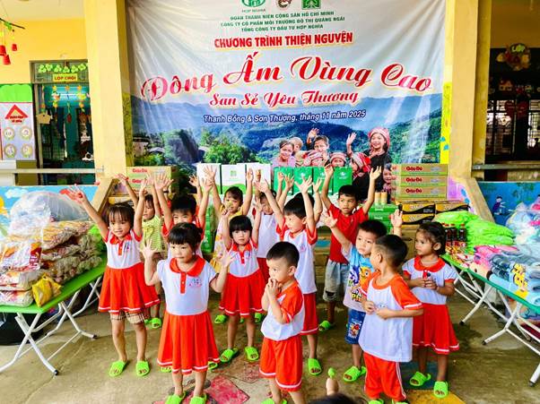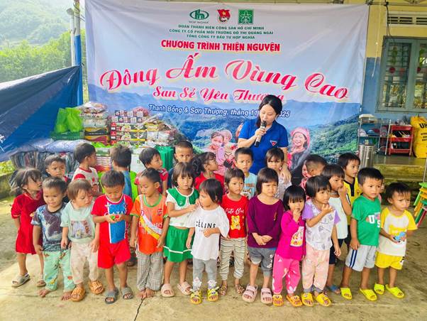 Ngày 13/11/2025, tiếp tục phát huy tinh thần xung kích, tình nguyện của tuổi trẻ, Đoàn viên Công ty CP Môi trường Đô thị Quảng Ngãi đã có mặt tại trường Mầm non Sơn Thượng, xã Sơn Hà, tỉnh Quảng Ngãi. Hoạt động lần này cũng là dịp để các Đoàn viên thanh niên phát huy vai trò tiên phong, gắn kết cộng đồng qua tinh thần “lá lành đùm lá rách”. Sự chung tay của các Đoàn viên thanh niên sẽ giúp động viên các em học sinh, đặc biệt là các em vùng cao lan tỏa những giá trị nhân văn, khơi dậy tinh thần đoàn kết và trách nhiệm xã hội sâu sắc.