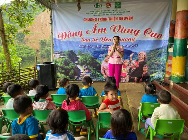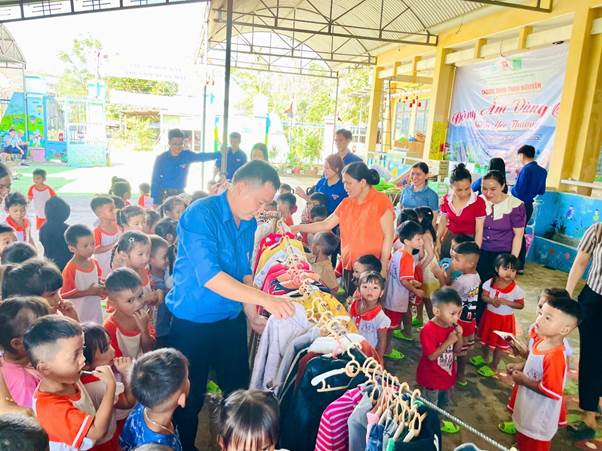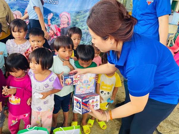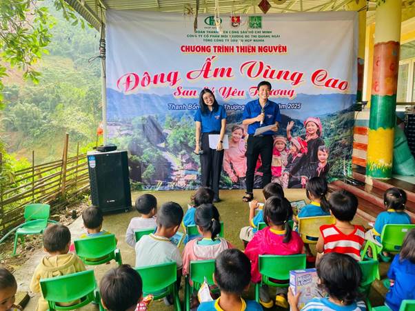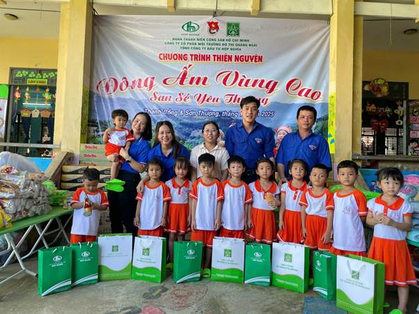 Tại buổi gặp gỡ các học sinh Lớp Trà Xanh Trong, trường Mầm non Trà Lâm, xã Thanh Bồng, Đoàn viên Công ty CP Môi trường Đô thị Quảng Ngãi đã trao tặng đồ dùng học tập, đồ chơi, áo ấm, nhu yếu phẩm trị giá 9.907.000 đồng. Mỗi món quà, mỗi lời động viên không chỉ là vật chất, mà còn là những khát vọng, niềm tin gửi gắm tới các em học sinh vùng cao.