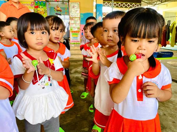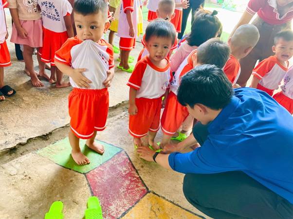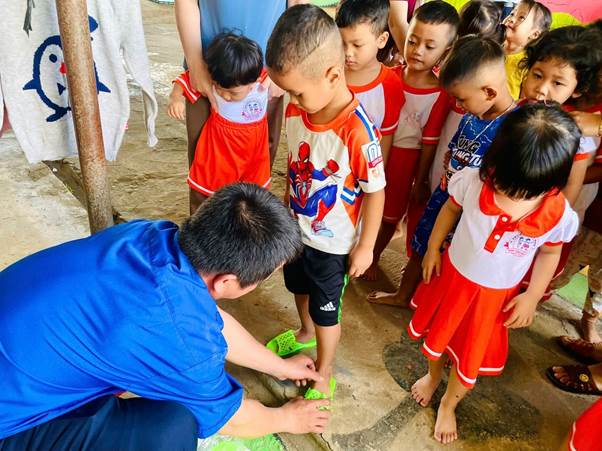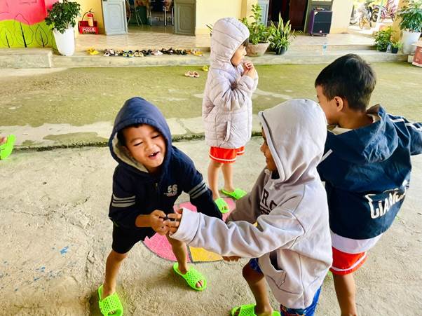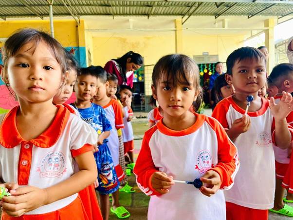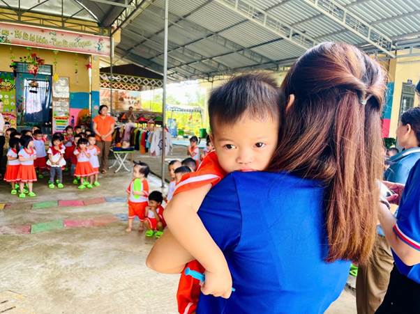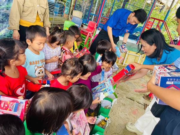 Học sinh trường Mầm non thôn Trà Khương trong không khí vui tươi với Đoàn viên Công ty