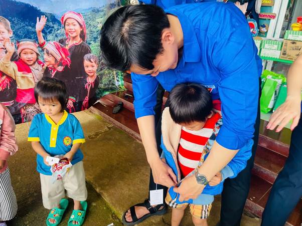Các Đoàn viên lựa chọn áo ấm phù hợp cho các em nhỏ
