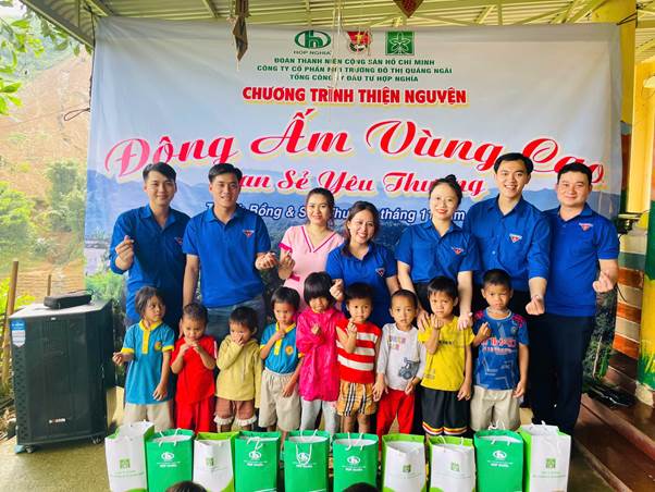Cũng tại xã Thanh Bồng, Đoàn viên thanh niên Công ty đã tới thăm và tặng quà Lớp Trà Xanh Trong, trường Mầm non Trà Lâm, xã Thanh Bồng, tỉnh Quảng Ngãi. Người dân xã Thanh Bồng chủ yếu là dân tộc Cor, canh tác nông nghiệp để sinh sống. Đây là điểm trường có tỷ lệ hộ dân nghèo nhất của xã Thanh Bồng. Hiện nay, Lớp Trà Xanh Trong có 32 học sinh đang học tập. Đây cũng là điểm trường còn thiếu thốn rất nhiều đồ dùng học tập, chăn ấm và nhu yếu phẩm.